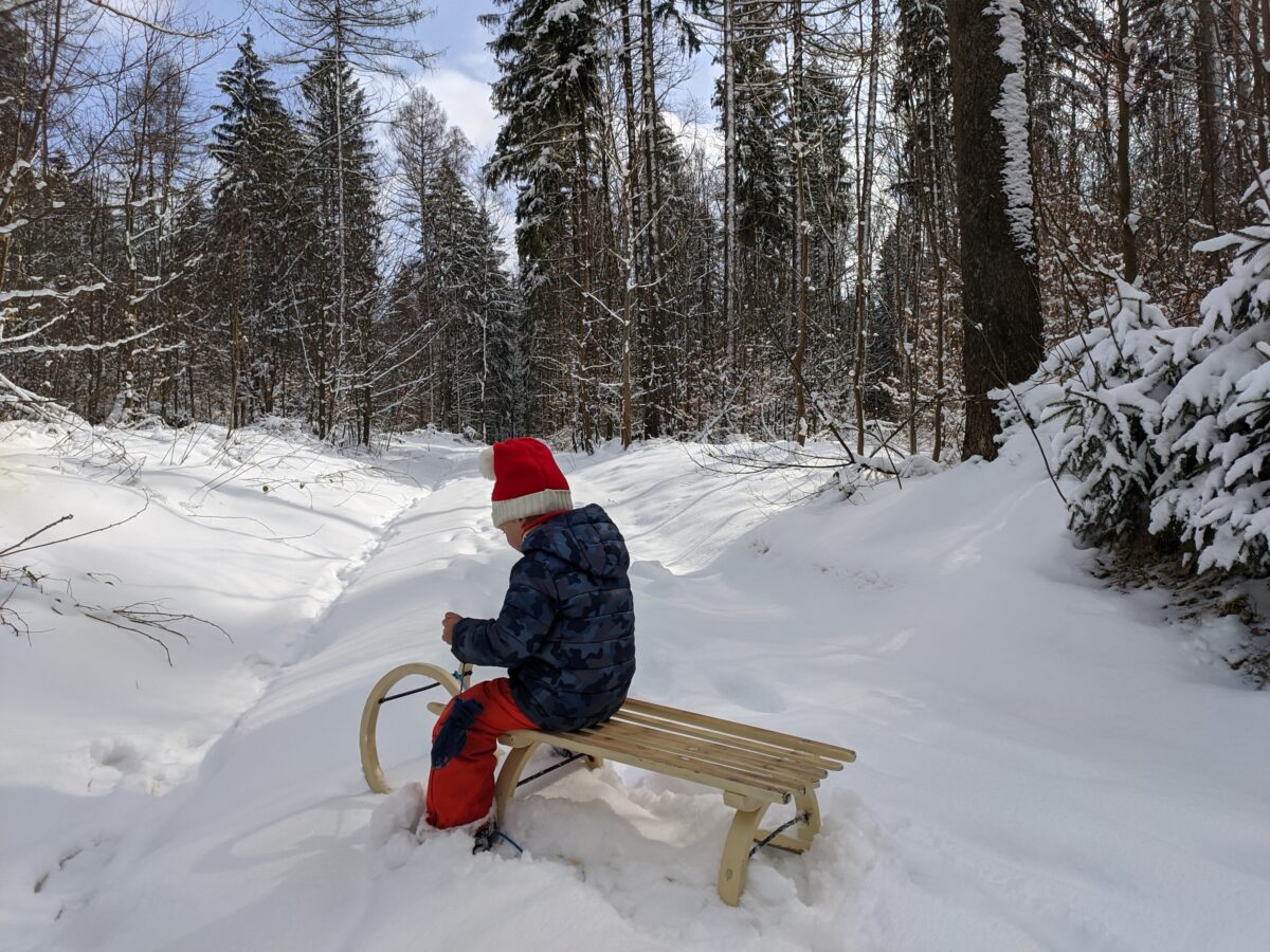 Wandern im Sebnitzer Winterwald mit Kleinkind