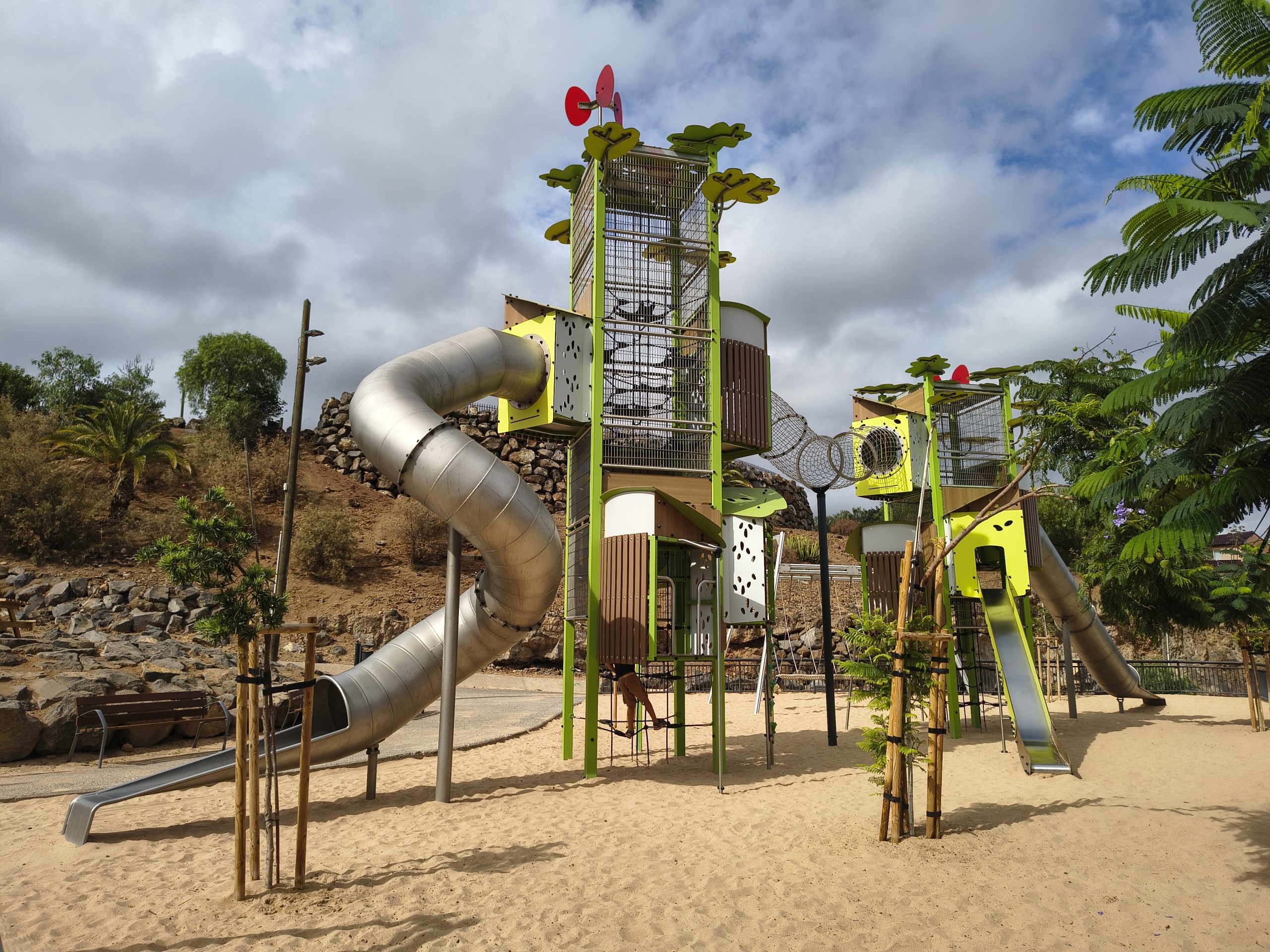 Wir haben Santa Cruz de Tenerife hauptsächlich als Durchfahrtsziel genutzt um zur Fähre zu gelangen. Oberhalb der Stadt gibt es einen schönen Park, den wir erkundet haben, den Parque Cuchillitos de Tristán. Dort gibt es einen richtig tollen Spielplatz. Es gibt ein riesen Klettergerüst für größere Kinder und auch viele Klettergerüste für kleinere Kinder. Rutschen, Tunnel und Schaukeln sorgen für sehr viel Spaß. Es stehen auch genügend Sitzmöglichkeiten bereit.