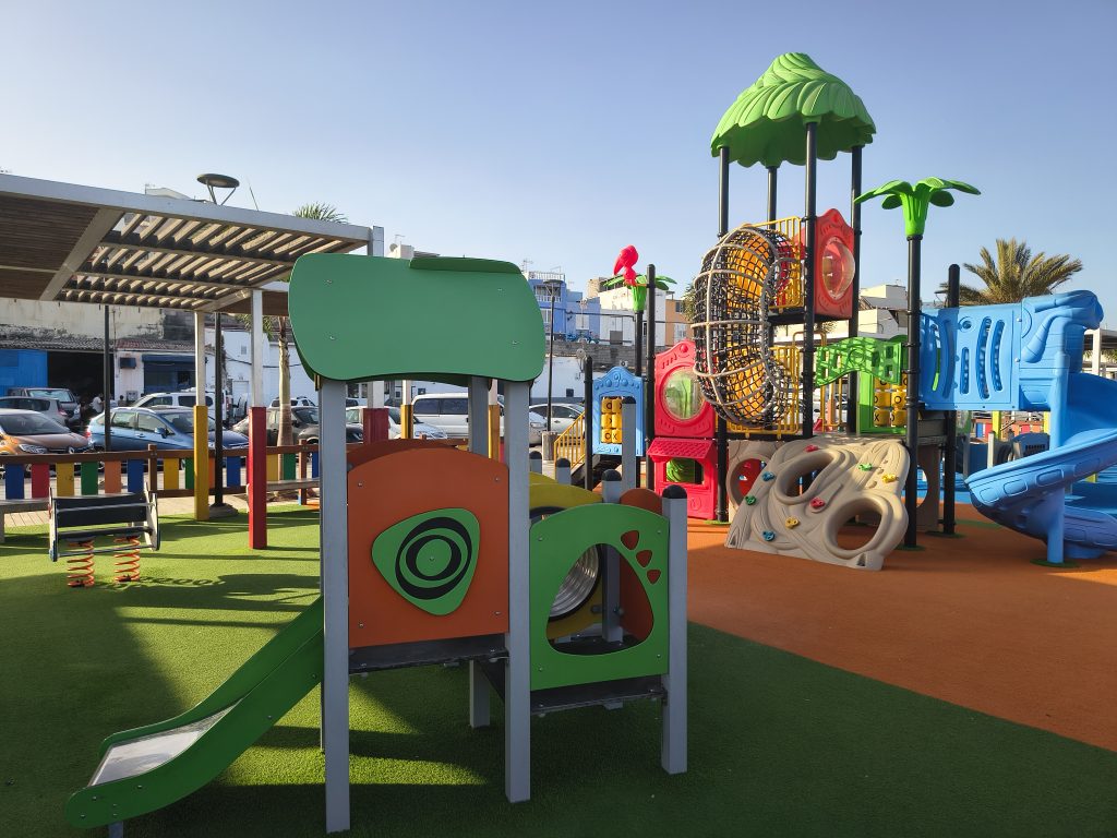 Im Parque de las Olas befindet sich ein großer Spielplatz mit neuen Spielelementen. Es gibt Schaukeln, ein großer Kletterleuchtturm mit Rutsche und kleineren Kletterelementen.