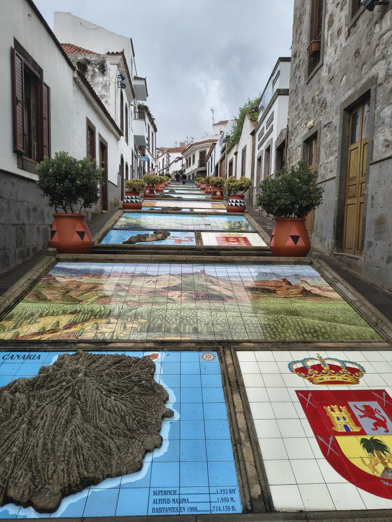 Ein weiteres Highlight in Firgas ist der Paseo de Canarias. In wunderbaren Mosaiken werden sieben Kanareninseln dargestellt. Die Flaggen der Inseln und eine Hauptsehenswürdigkeit jeder Insel wird malerisch präsentiert. Zudem werden die Inseln plastisch in Größe und Höhe abgebildet. Das ist wirklich spannend zu sehen.