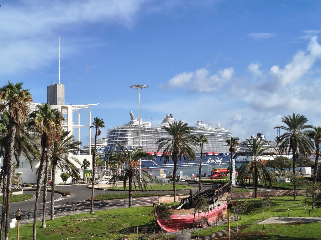 Die Aussicht auf den Hafen von Las Palmas mit seinen anliegenden Kreuzfahrtschiffen ist wunderschön.