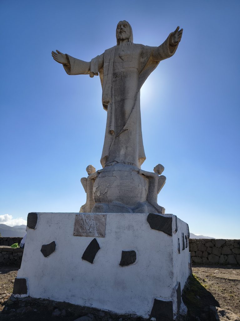 Ein weiterer Aussichtspunkt ist der Mirador del Corazón de Jesús. Eine große Jesusstatue thront über Artenara.