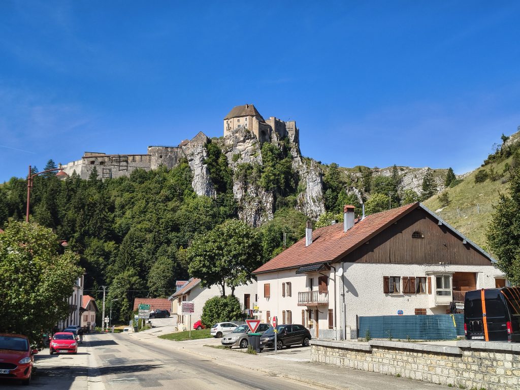 Wir haben die Schweiz am Grenzübergang Les Verrières verlassen und sind auf der französischen Seite mit Blick auf die beeindruckende Burg „Château de Joux“ von Frankreich begrüßt worden.