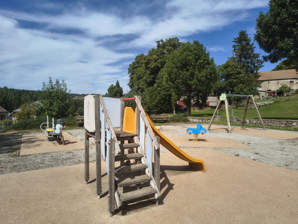 In dem kleinen Ort Chaudeyrac haben wir eine Pause an einem kleinen Spielplatz mit Picknick gemacht.