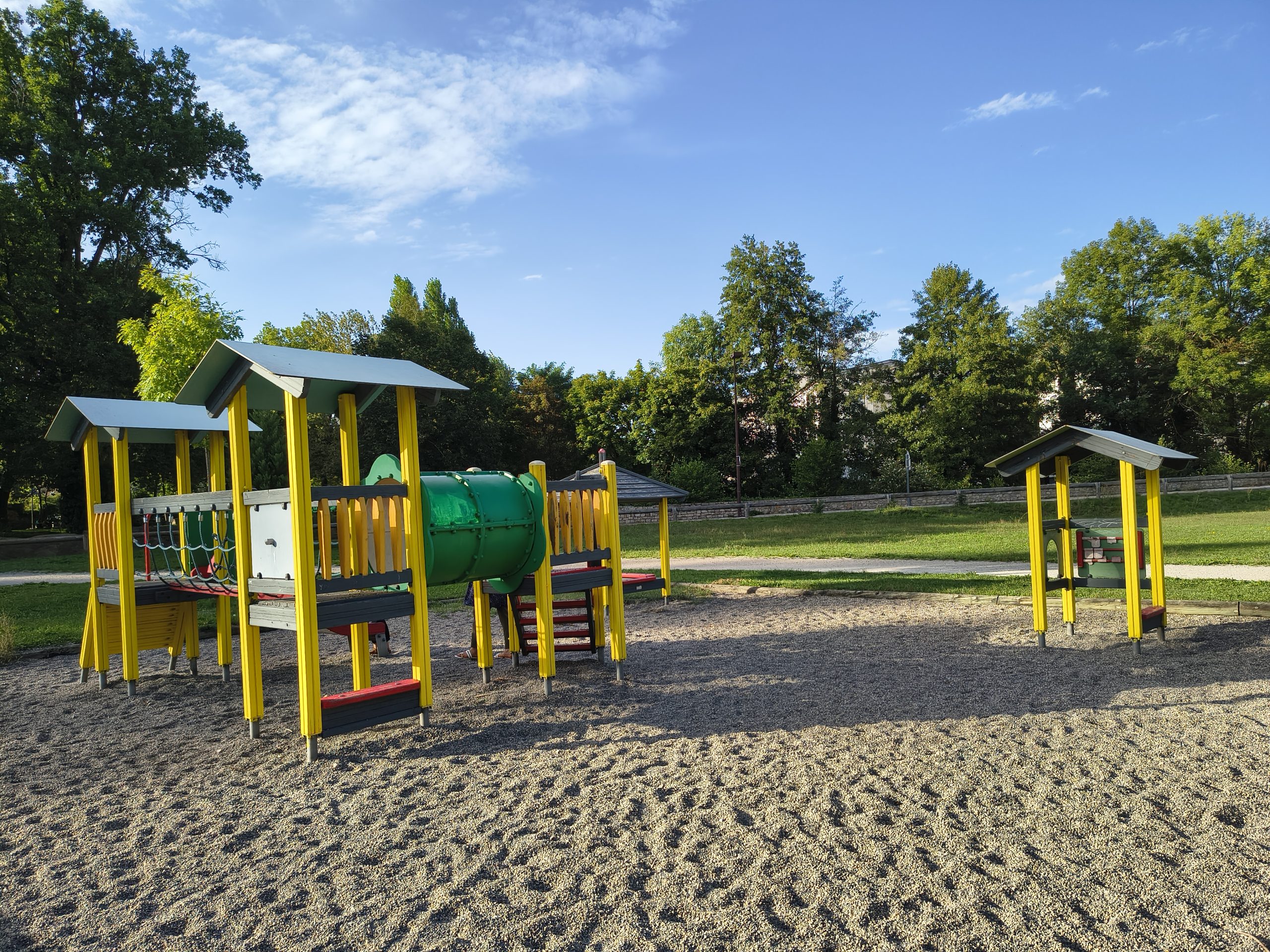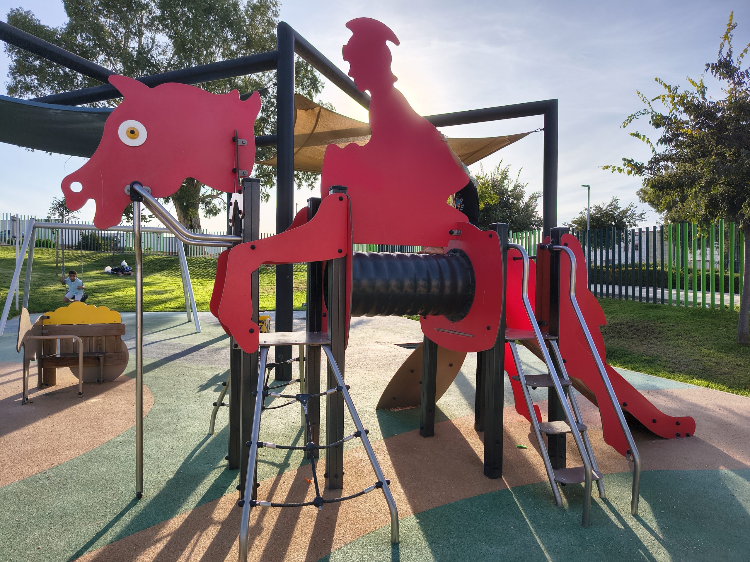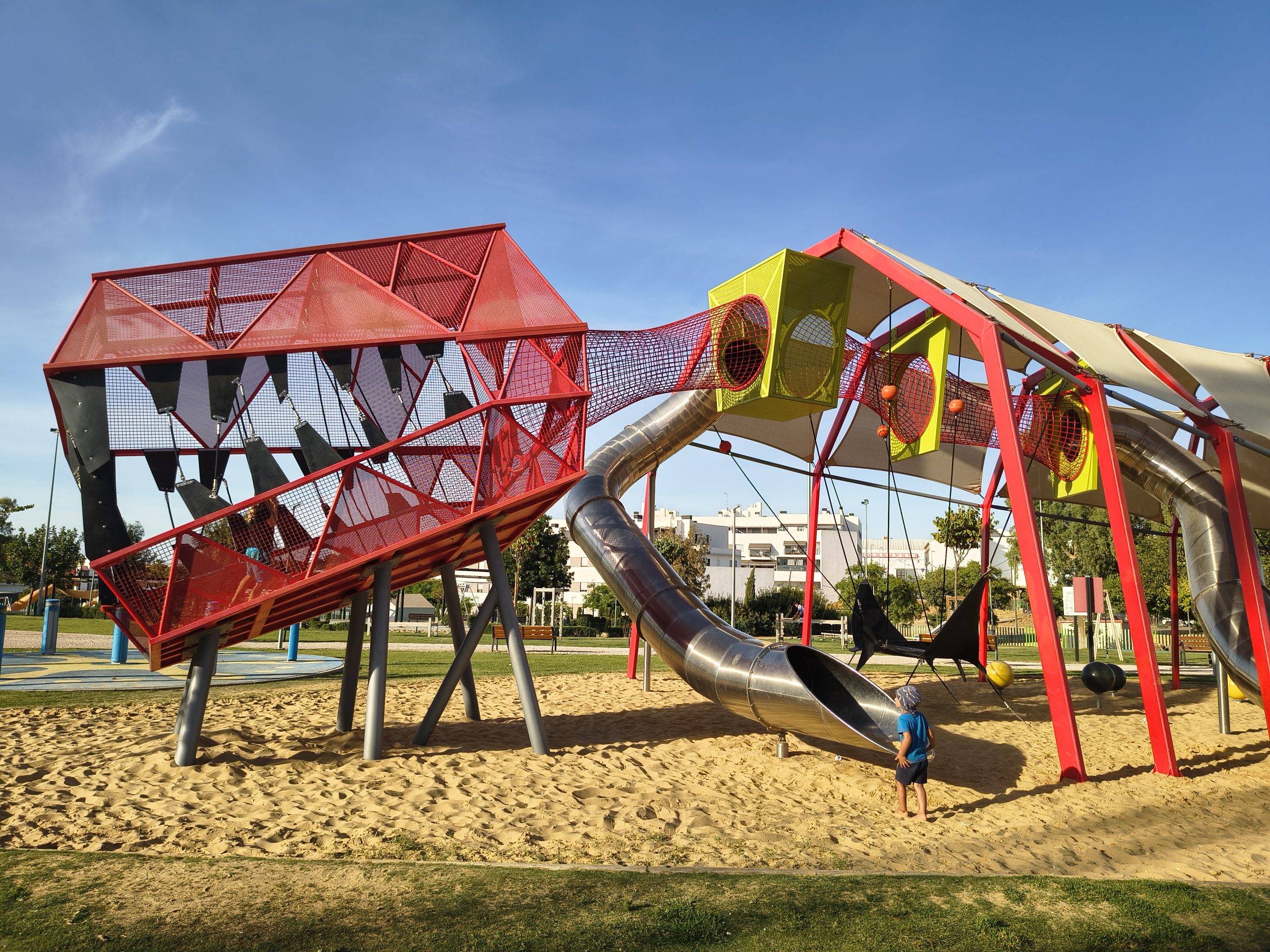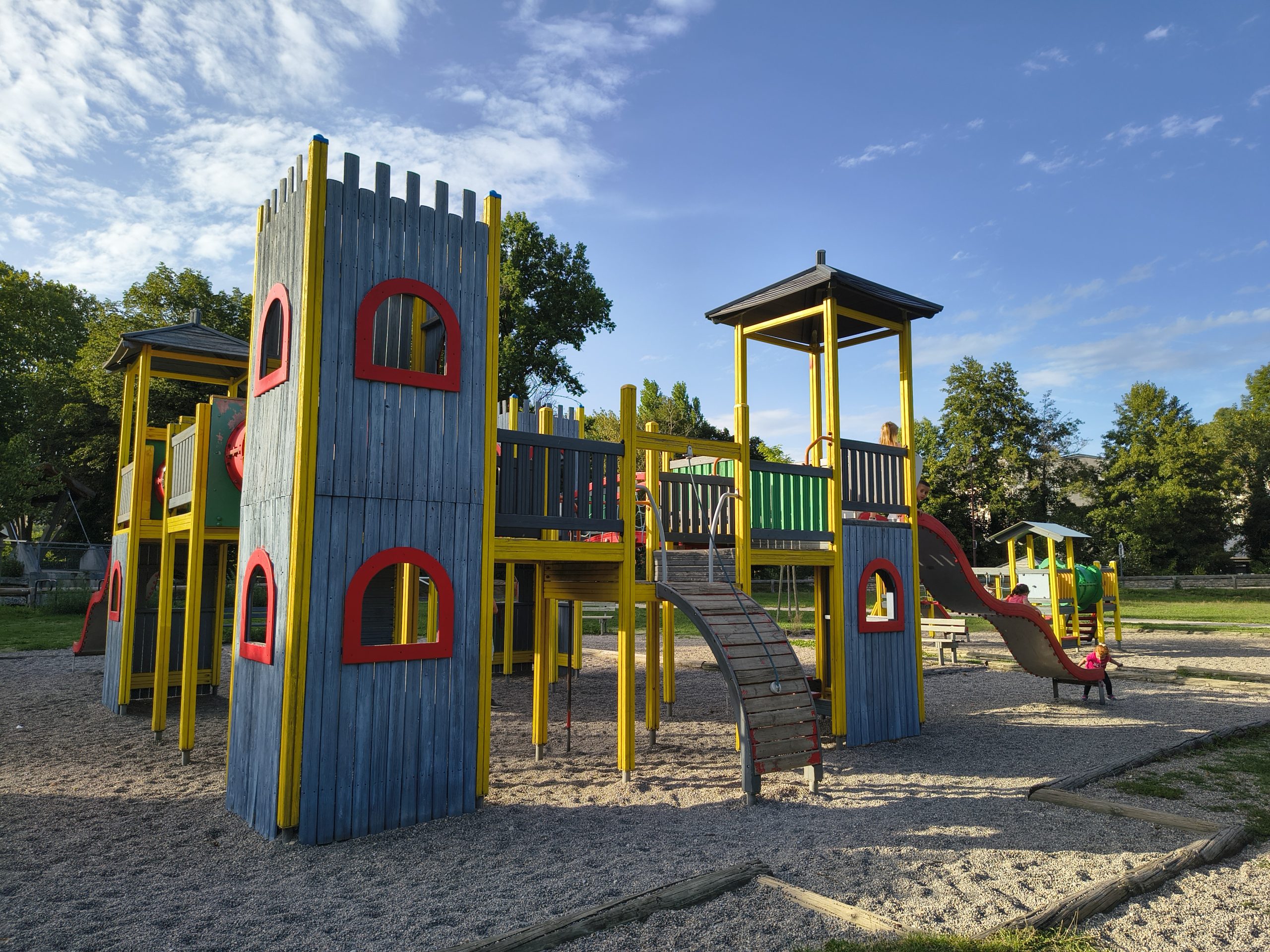 Da es so heiß war, wir hatten 38°C, kamen die meisten Einheimischen erst gegen 20:00 zum Spielplatz. Vorher hatten wir den tollen Park nahezu für uns allein.
