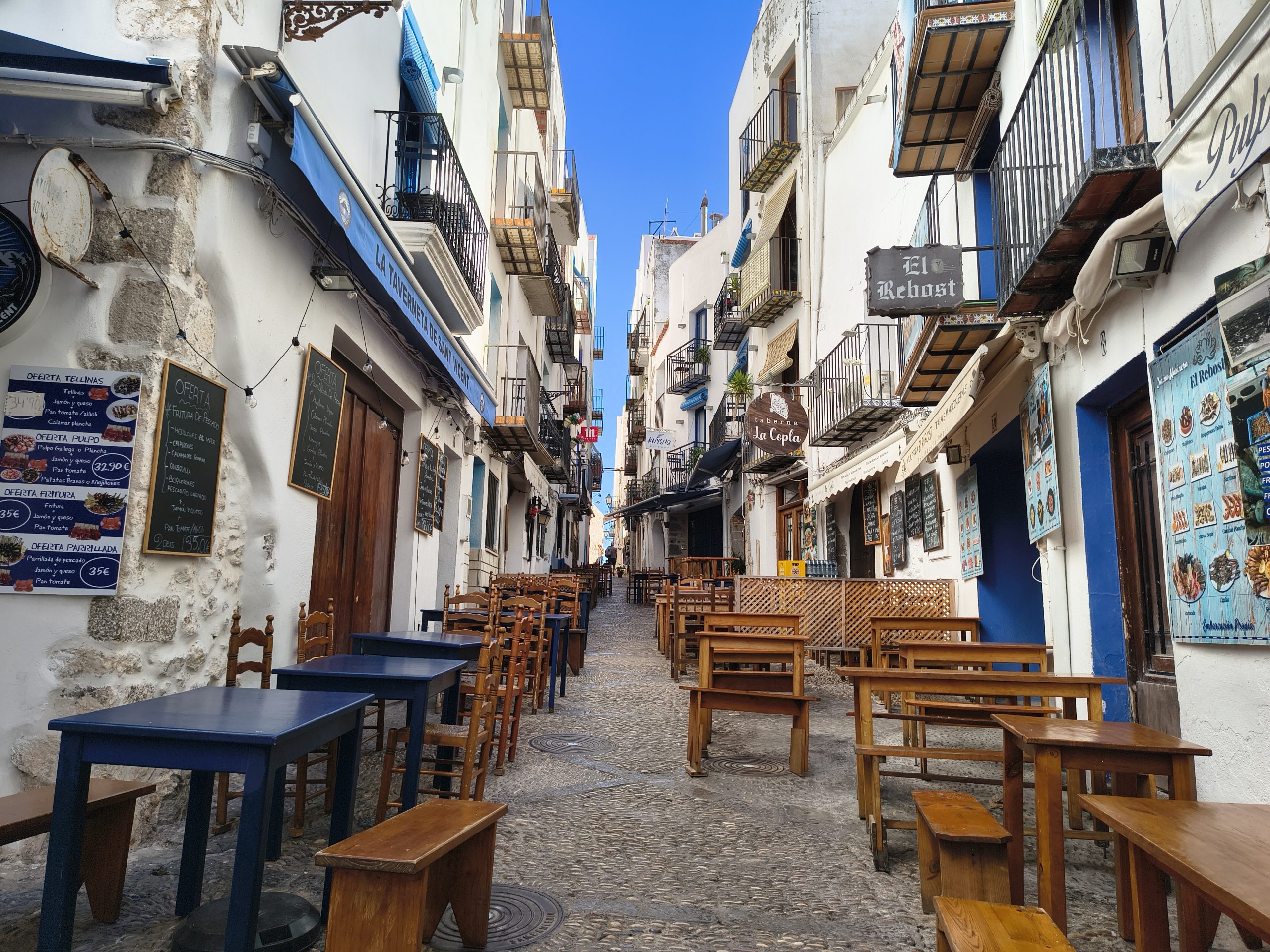 Wir haben den kleinen Ort Peñíscola erkundet. Wir waren schon 2023 einmal hier im Rahmen unseres einjährigen Camper Roadtrips durch Europa. Damals sind wir jedoch nur die Strandpromenade entlang geschlendert und haben uns die Altstadt nicht angesehen. Das haben wir dieses Mal nachgeholt. Peñíscola gehört zu den „Pueblos más bonitos de España“ (den schönsten Dörfern Spaniens).