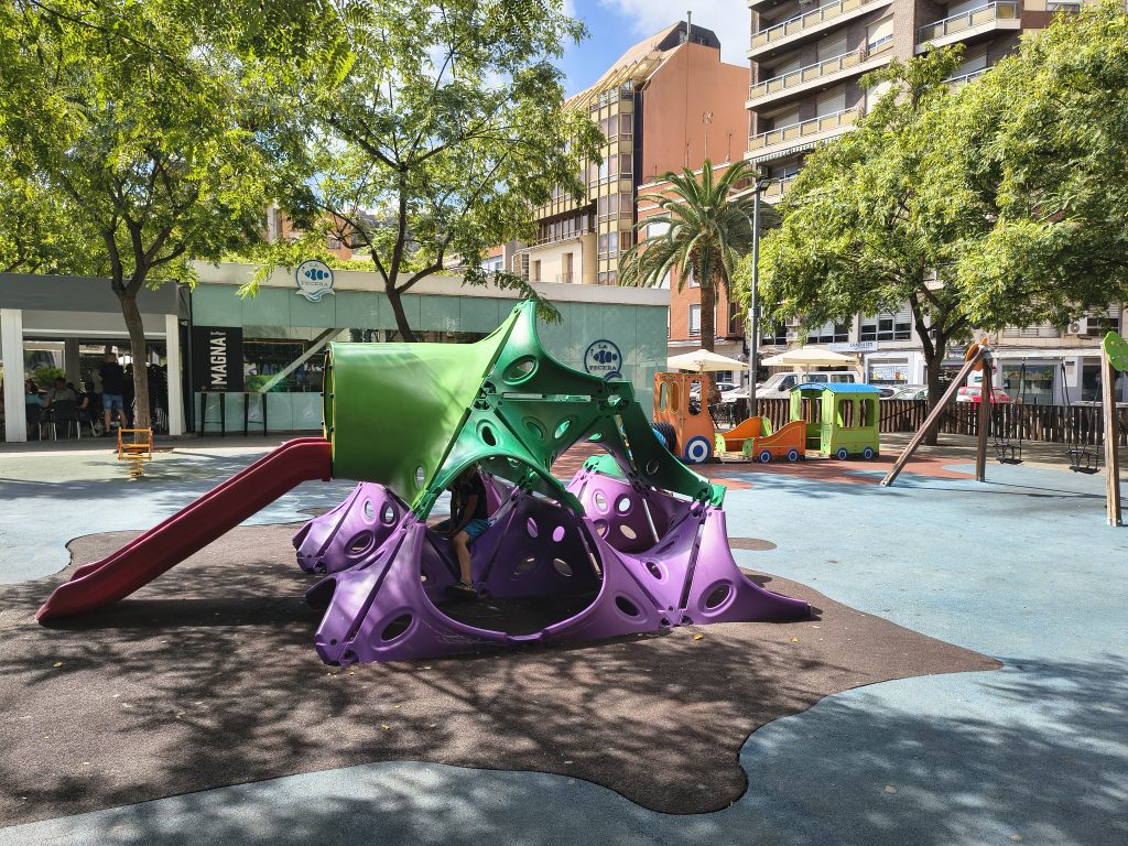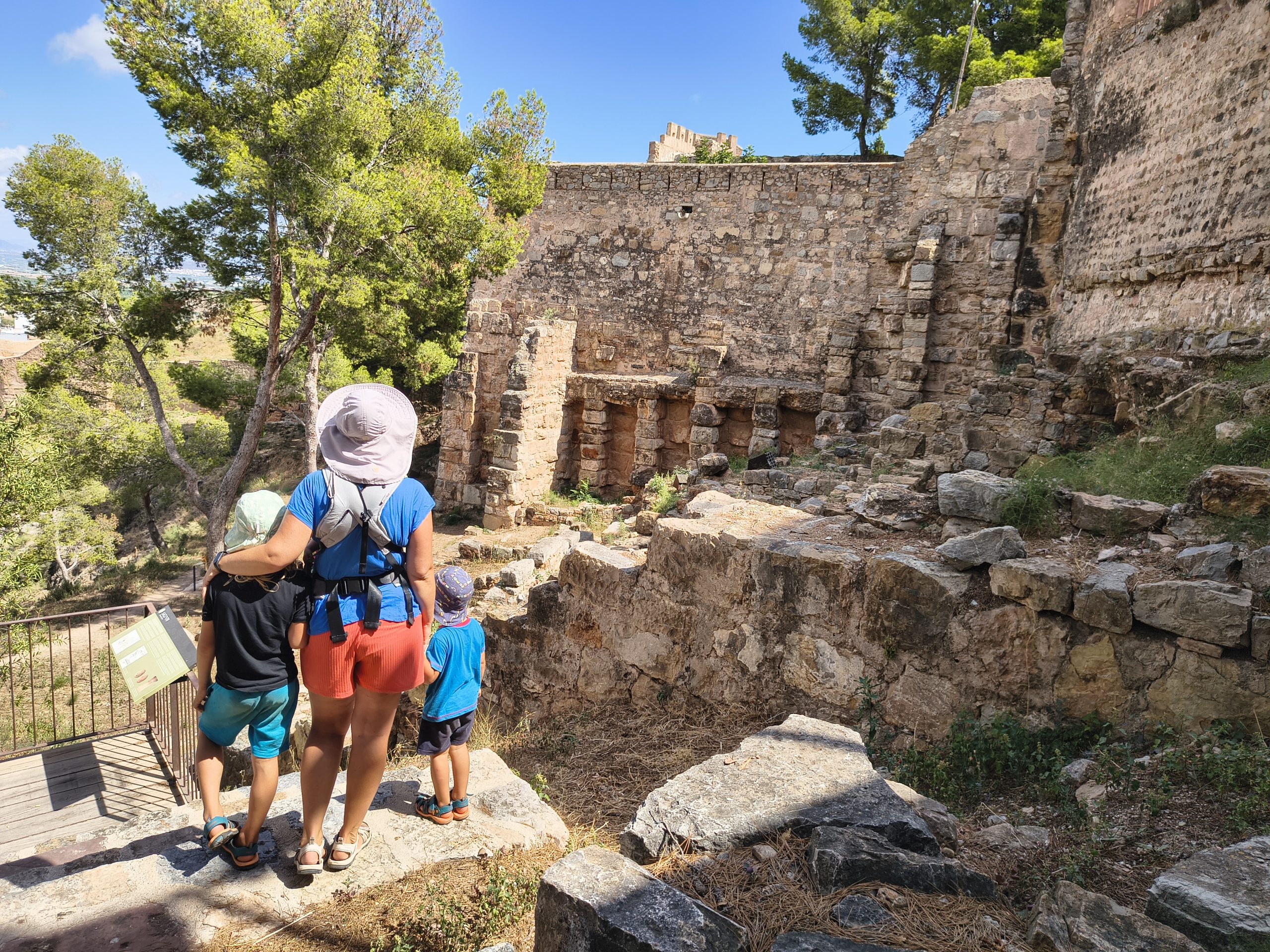 Wir starteten unseren Ausflug an der zentralen Plaça del Cronista Chabret. Dort befindet sich ein schöner Spielplatz und ein Café. Wir haben dort natürlich eine Weile gespielt und sind dann weiter durch die Altstadt geschlendert, hinauf zur Burganlage.