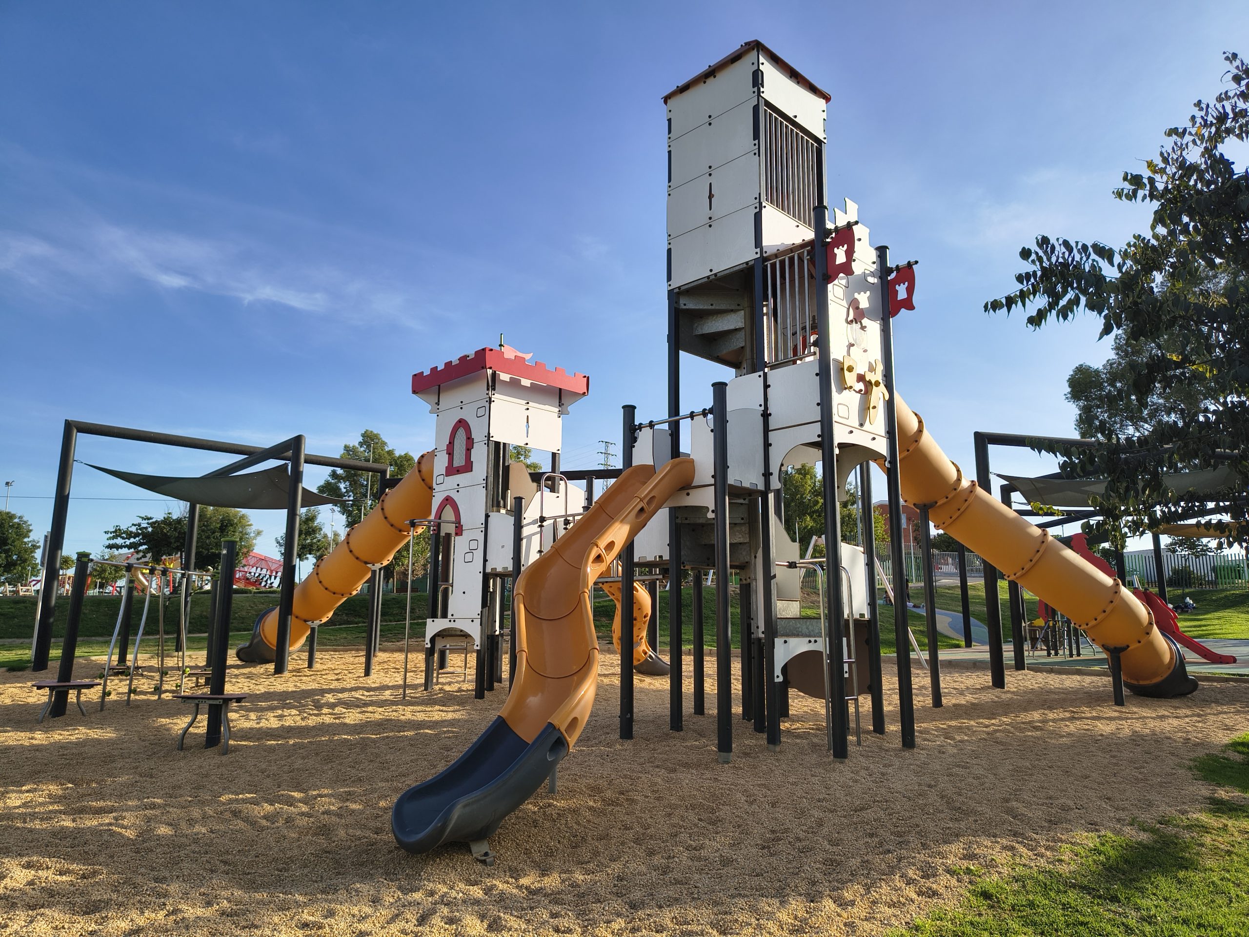 Die Gemeinde hat einen riesigen Abenteuerspielplatz und einen genialen Park erschaffen. Es gibt ein riesiges Dinosaurier Klettergerüst, mehrere Spielplatzbereiche mit Klettermöglichkeiten, Schaukeln, einer Zipline. Es gibt einen kleinen Ententeich und eine saubere Toilette. Zudem kann man auf den Wegen im Park gut Fahrrad fahren. Viele Bänke und Tische sind vorhanden.
