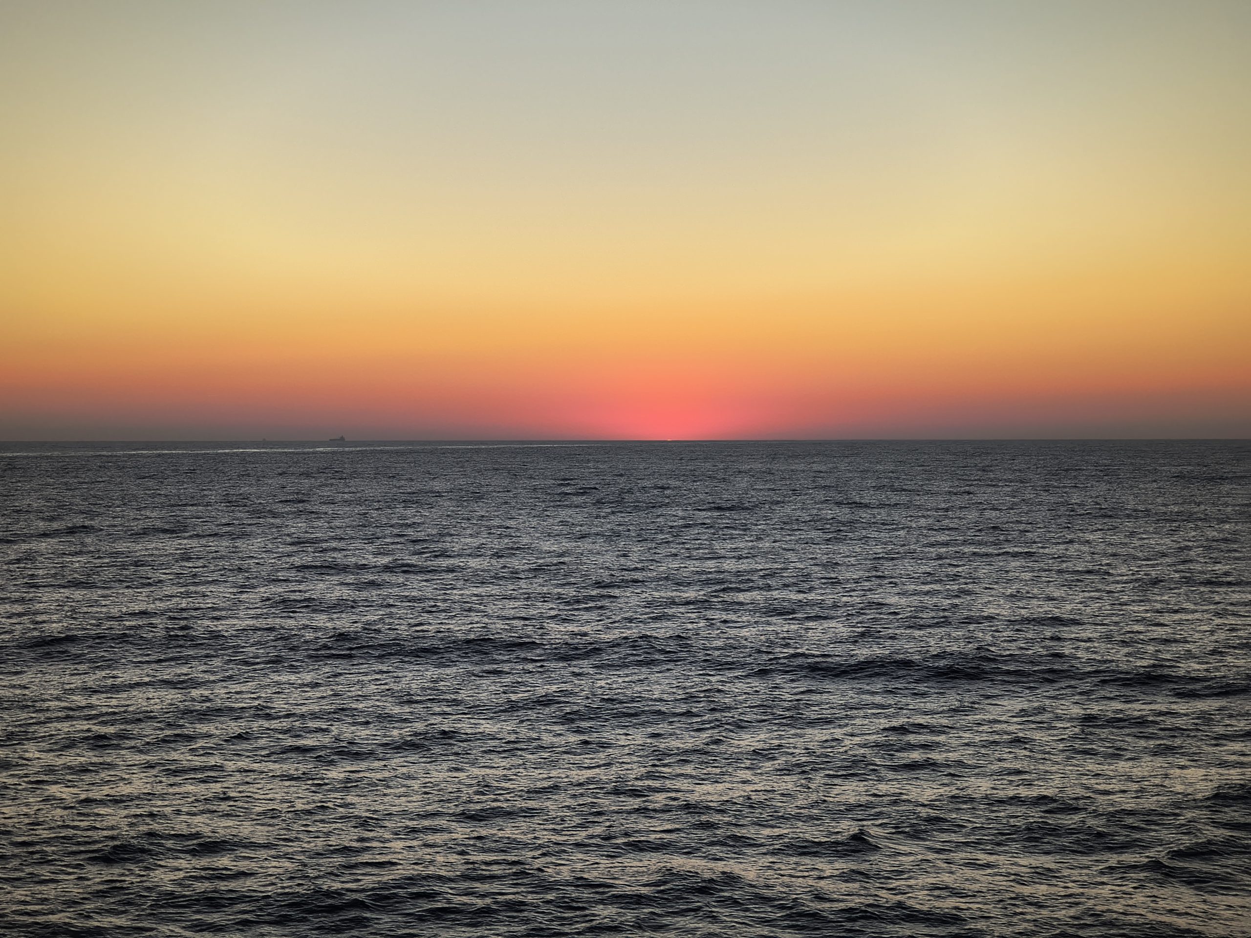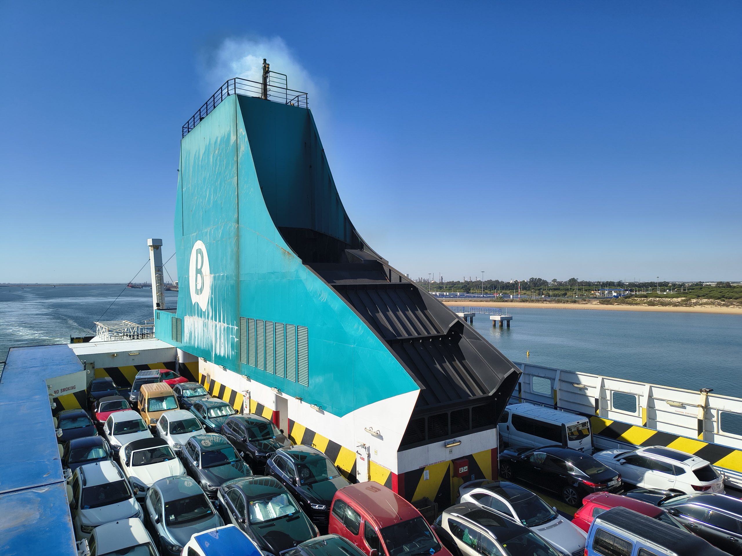 Wir sind in Huelva mit der Fähre des Unternehmens Baleària 17:00 abgelegt. Wir verbrachten insgesamt 40 Stunden auf der Fähre und schliefen zwei Nächte an Bord. Im Hafen von Teneriffa hatten wir einen Zwischenstopp von ca. 7 Stunden. Die Fähre wurde ent- und neu beladen.