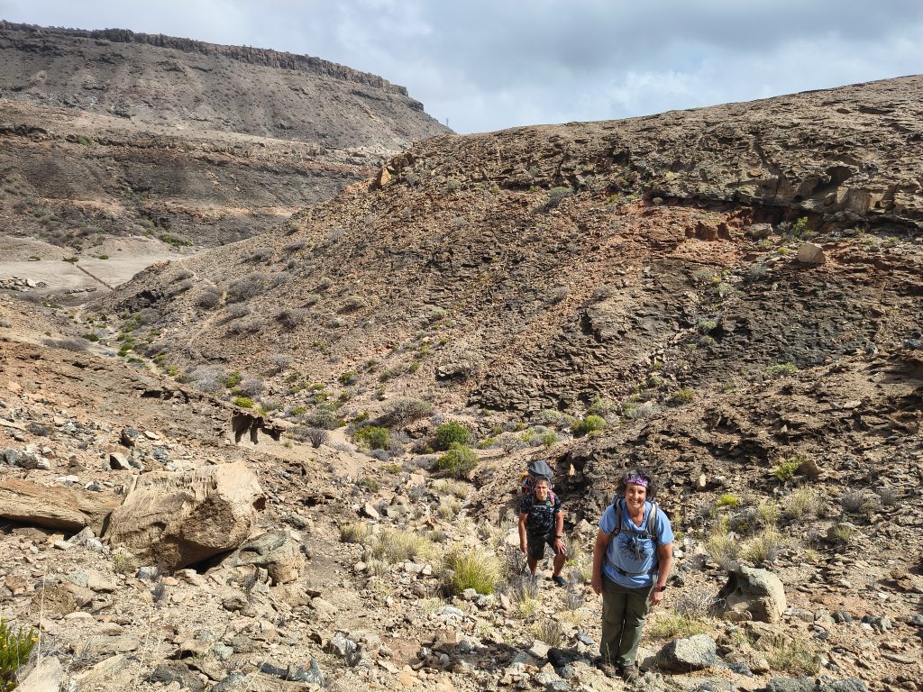 Wir haben eine 8 km lange Wanderung unternommen durch zwei Barrancos. Wir sind im Barranco de la Breña gestartet. Dieser führte uns auf abenteuerlichen Wegen, über Steine und Wurzeln, vorbei an riesigen Aloe Veras, hinab zum kleinen Dorf Los Arenales. Dort gibt es auch Parkmöglichkeiten um in die Schlucht zu wandern bis zum großen Wasserfall und auf gleichem Weg wieder zurück.