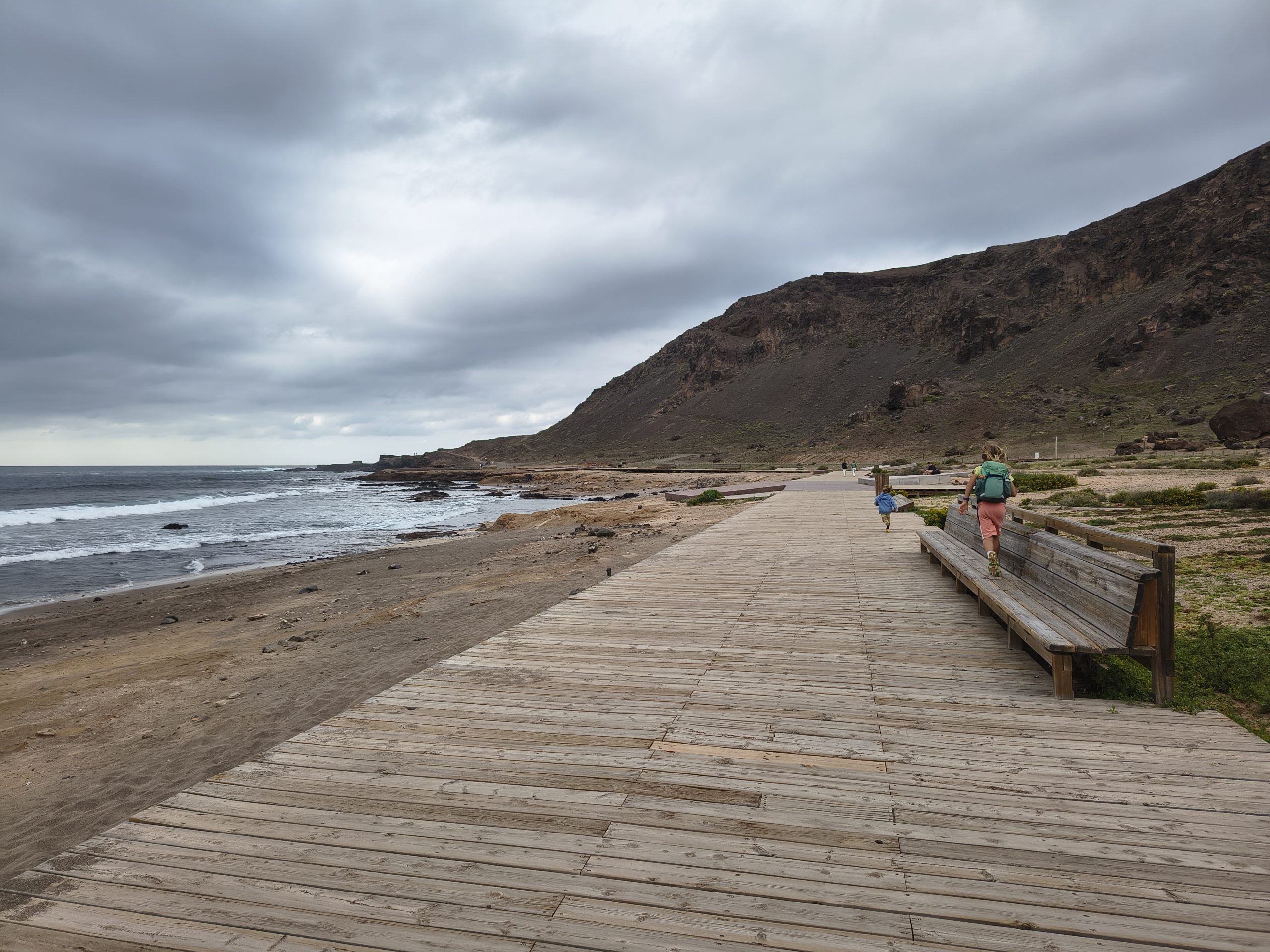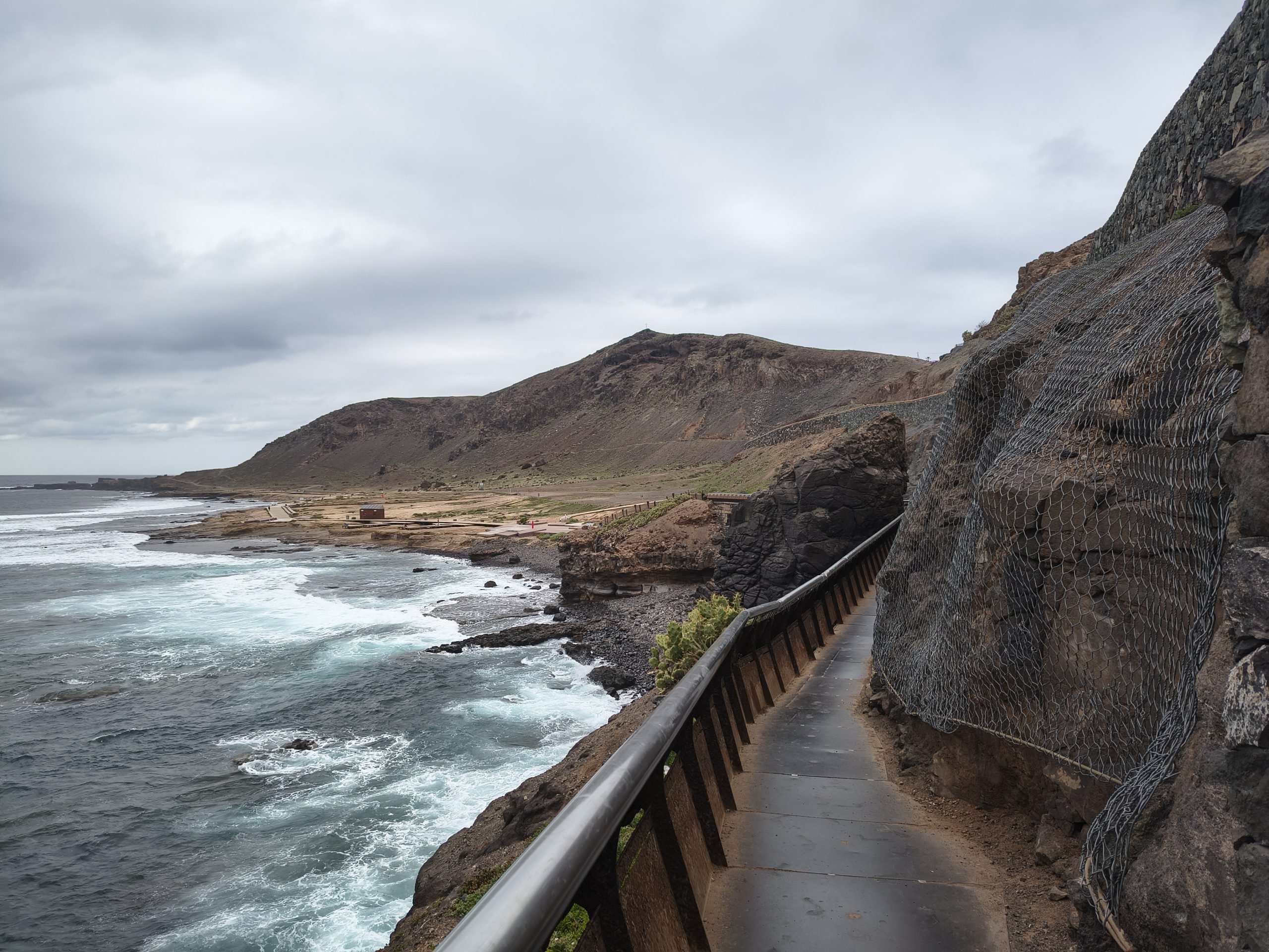 Nachdem wir den herrlichen Ausblick genossen haben, sind wir kurz durch den Stadtrand von La Isleta gelaufen. Weiter ging es entlang eines spektakulären Küstenweges. Das Highlight ist der Weg an sich, denn wir liefen über einen Holzsteg. Die wilde und raue Küste mit ihren hohen Wellen und dem wunderbar herrlichen salzigen Meeresduft, lässt diese Wanderung zu einem Genuss werden. Auch am Strand gibt es viele Möglichkeiten, um eine Rast einzulegen.