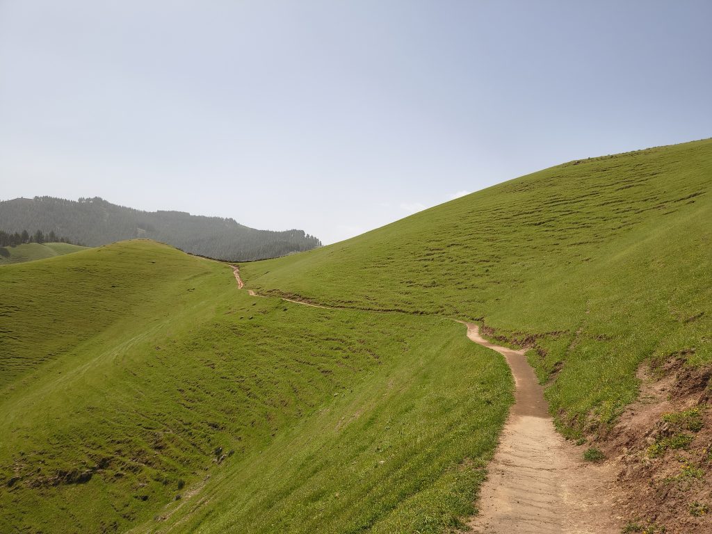 Auf dem Rückweg liefen wir an Kletterfelsen entlang, auf einem schmalen Pfad den Berghang hinauf und hinab.
