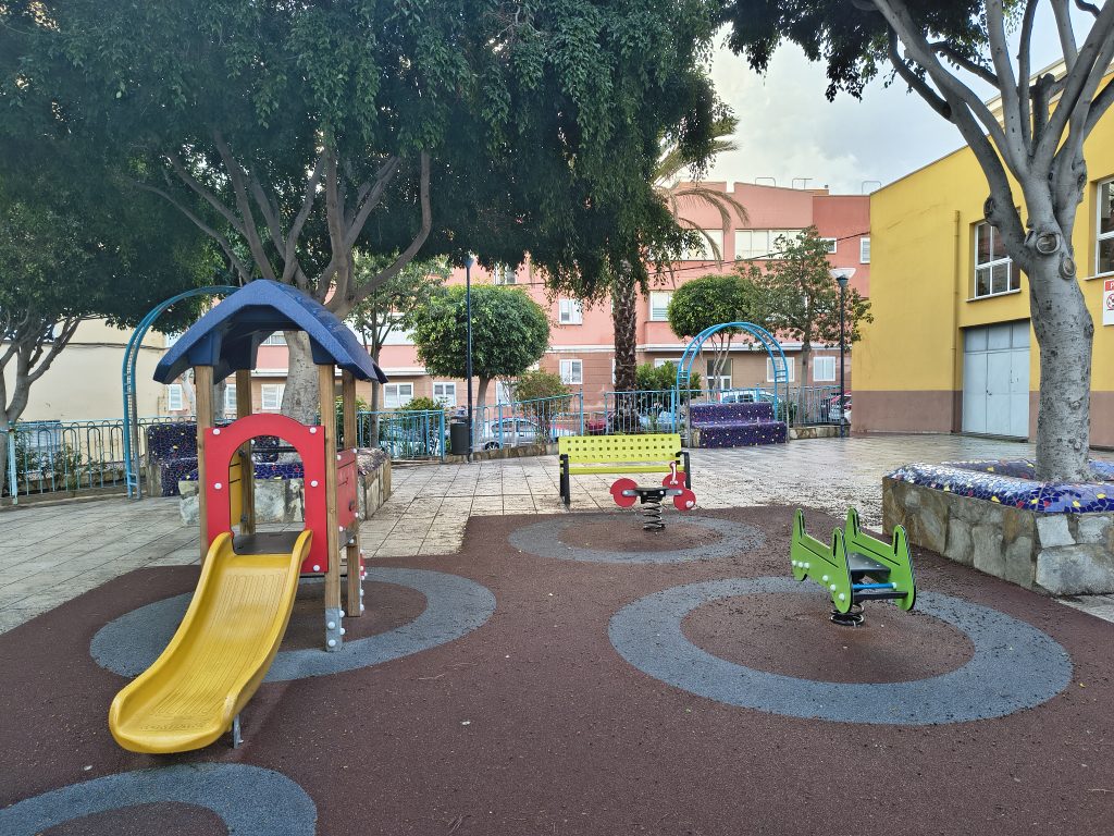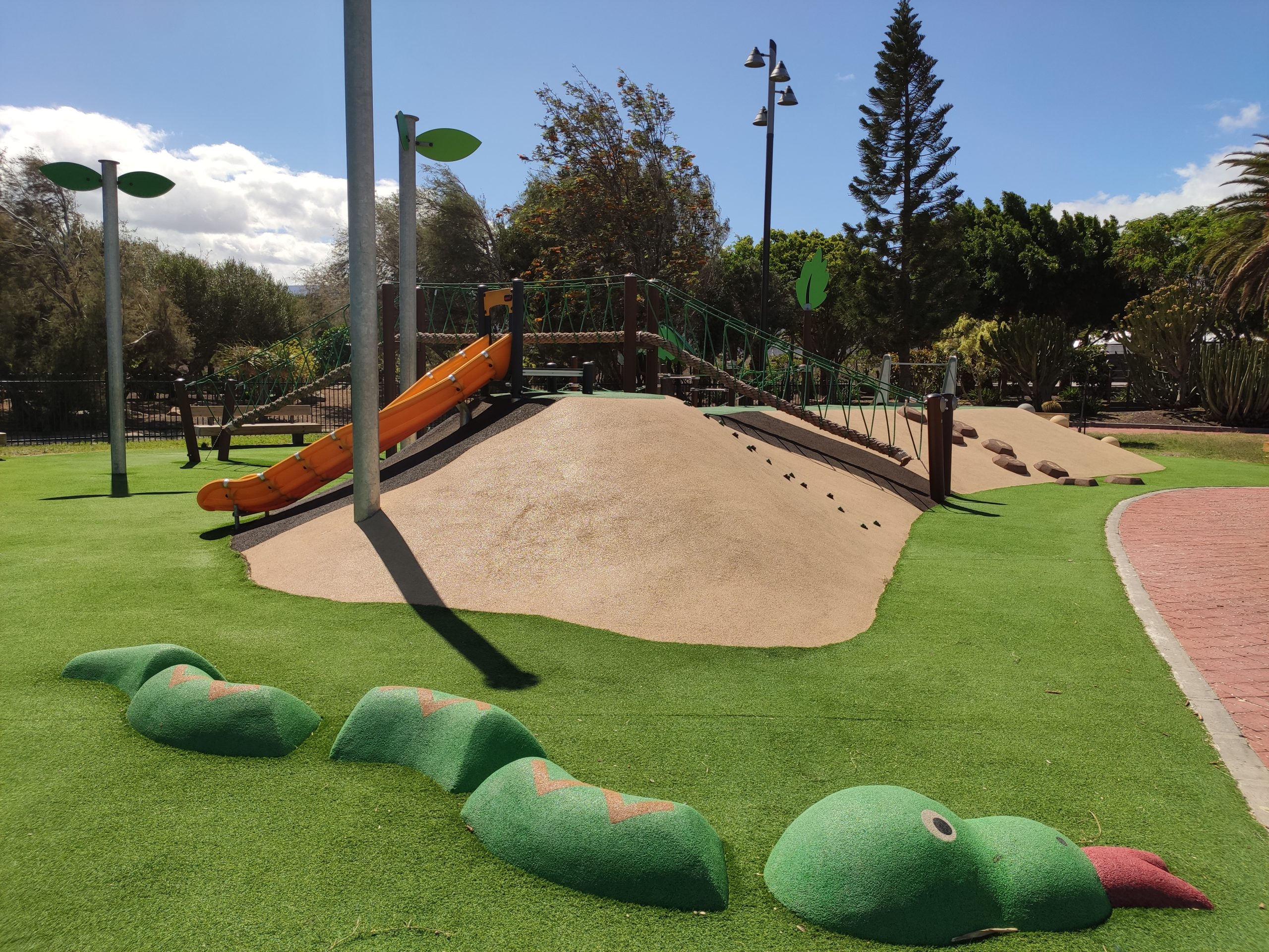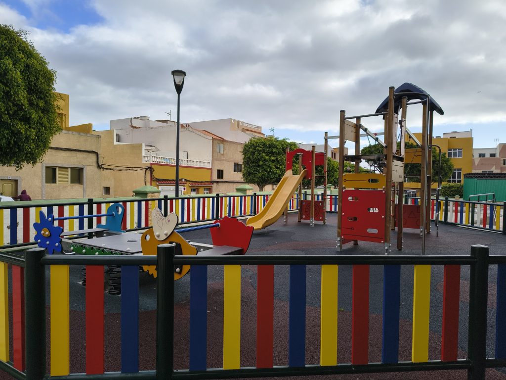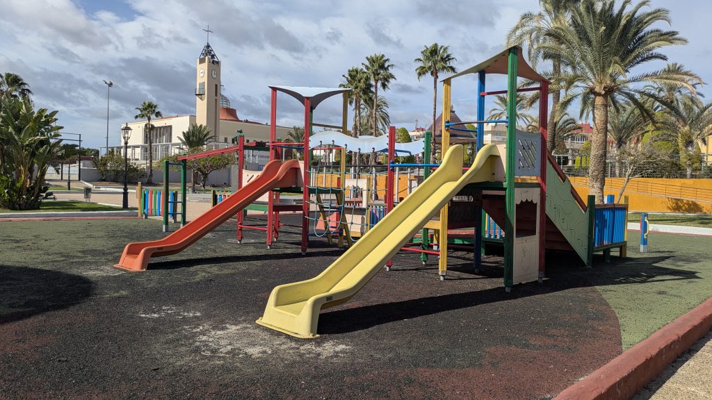 In der Calle Lanzarote in Maspalomas befindet sich ein schöner Spielplatz mit Rutschen, Klettergerüst und Rampen. Der Spielplatz befindet sich in einem kleinen Park, dem Parque Plaza San Fernando.