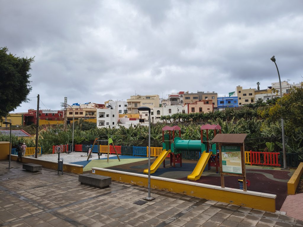 Arucas liegt im Norden von Gran Canaria und hat einen denkmalgeschützten Ortskern. Im Parque Municipal, der Garten der Marquise, befindet sich ein schöner Spielplatz mit Klettergerüsten, Schaukeln und Rutschen. Der Spielplatz ist eingebettet in die üppige grüne Pflanzenwelt des Parks. Eine kleine Oase.