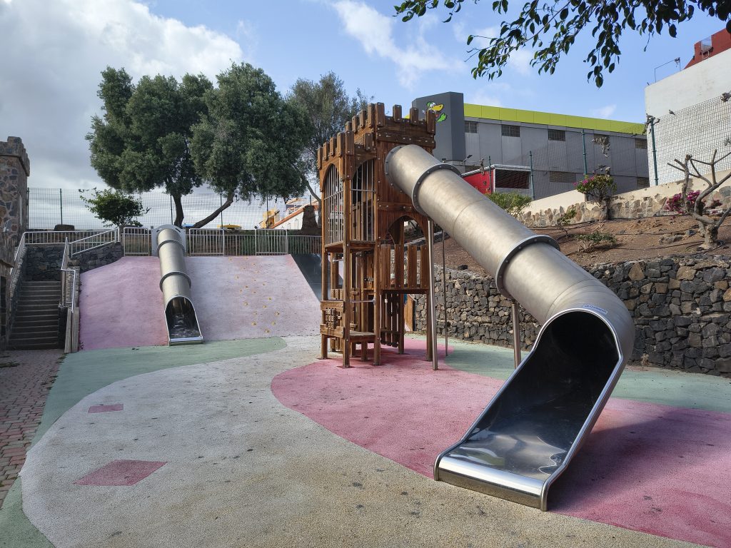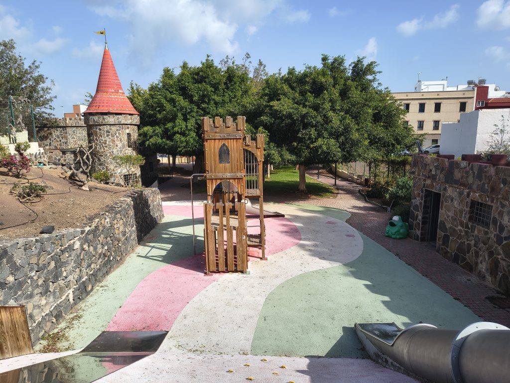 Im Parque La Vegueta in Agüimes befindet sich ein neuer Burgspielplatz. Es gibt eine große und eine kleine Burg. Die Burgen sind mit Rutschen, kleinen Schaukeln und vielen Klettermöglichkeiten ausgestattet. Es gibt sogar eine kleine Tür und Schatztruhen, perfekt für Rollenspiele. Zudem gibt es eine Nestschaukel, Wackeltiere und ein Karussell. Ein sehr toller Spielplatz!