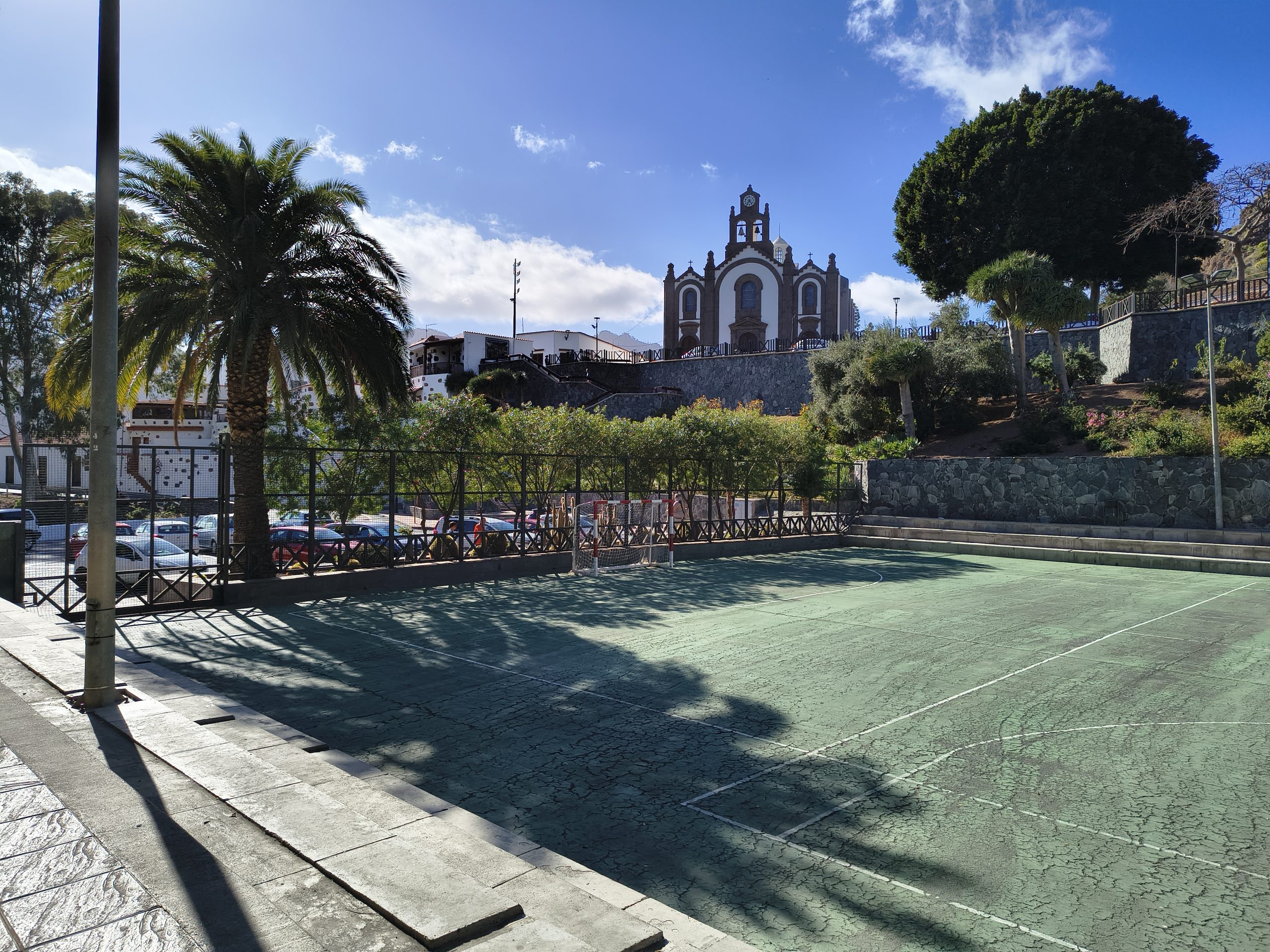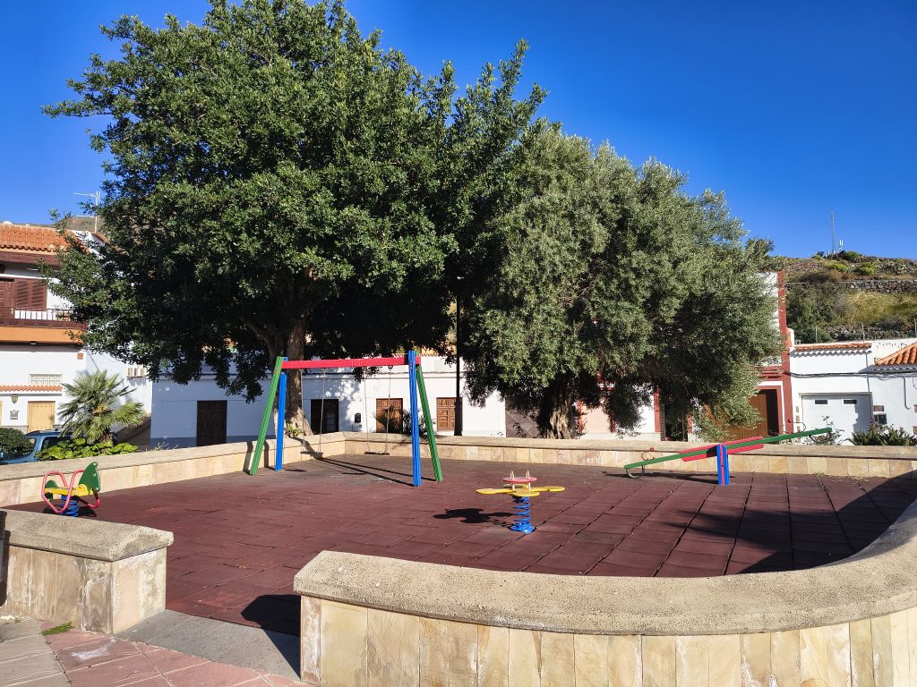 In dem kleinen Bergdorf Tejeda befindet sich oberhalb der Kirche ein kleiner Park mit schönem Spielplatz. Vom Spielplatz hat man einen grandiosen Ausblick über Tejeda, den markanten Felsen ‚Roque Nublo‚ und den höchsten Berg Gran Canarias ‚El Pico de las Nieves‘.