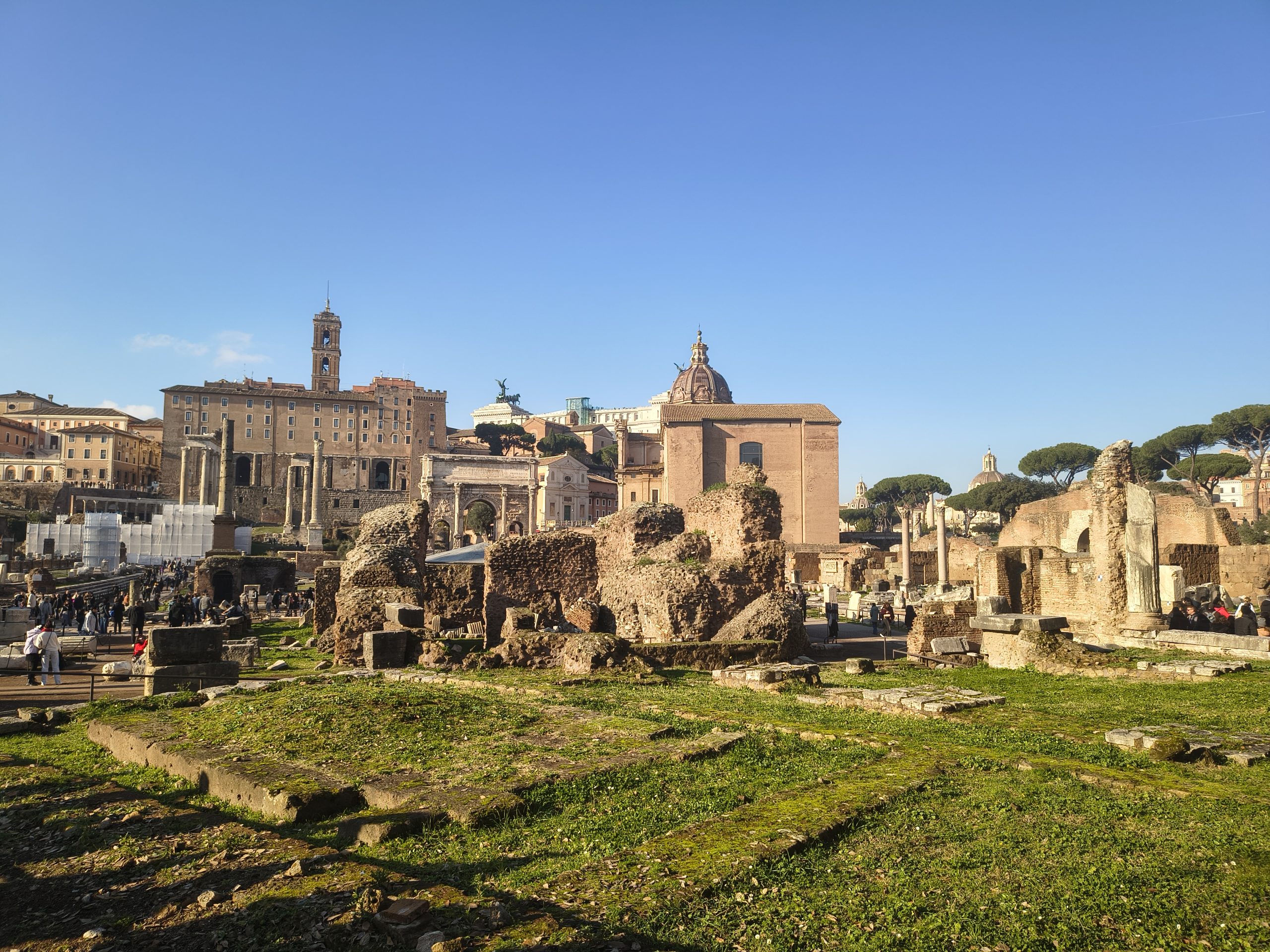 Das Forum Romanum befindet sich in unmittelbarer Nähe zum Kolosseum. Es gehört zu den bedeutendsten römischen antiken Stätten. Es war 1000 Jahre lang das wirtschaftliche, politische und religiöse Zentrum des Römischen Reiches. Wir liefen zwischen Tempeln, Basiliken und Triumphbögen. In einige Tempel kann man auch hinein schauen. Das Areal an sich ist riesig. In allen Himmelsrichtungen gibt es wieder Neues zu entdecken.