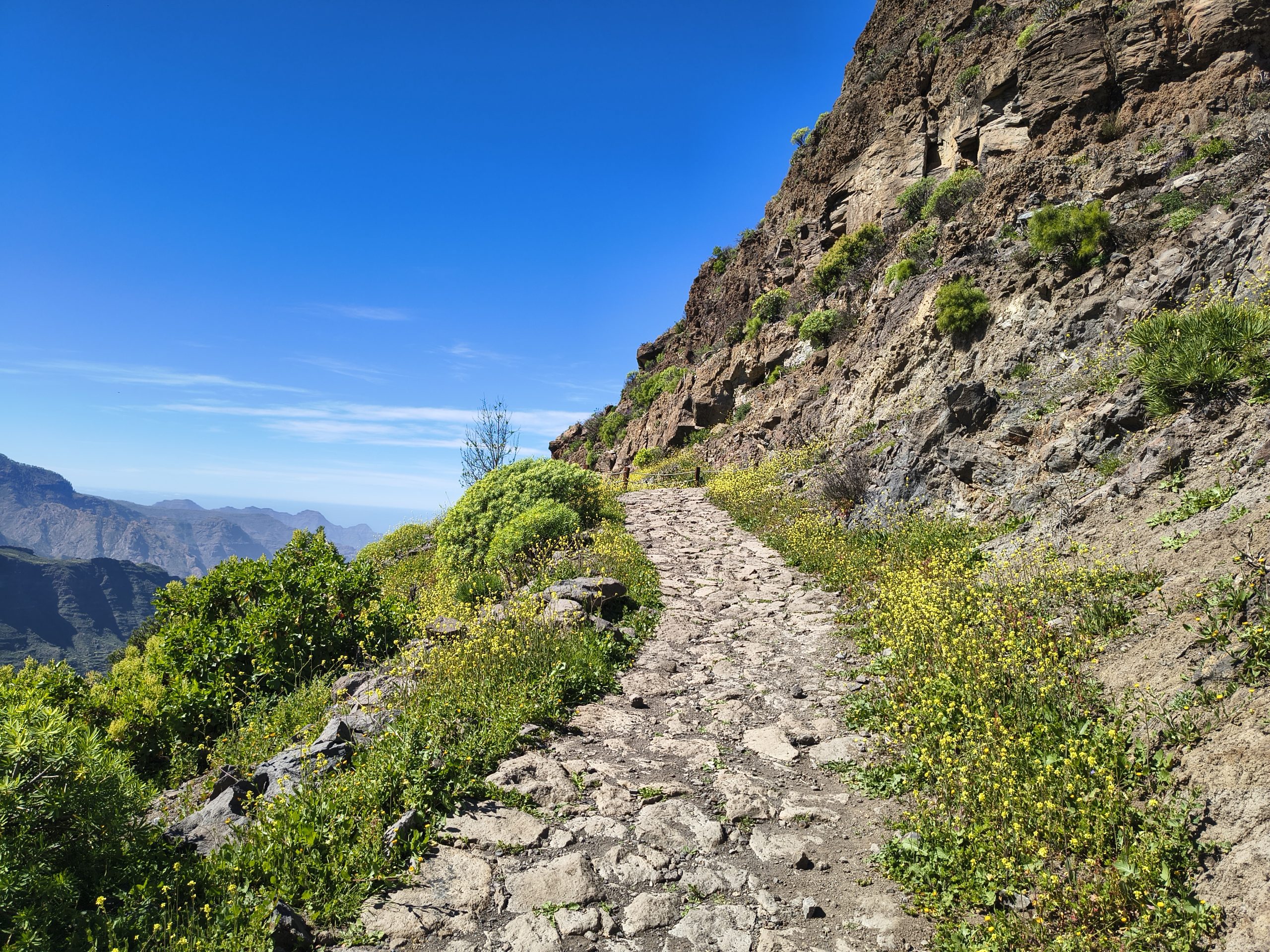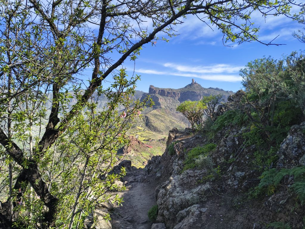 Die Cuevas de Caballero erreichten wir über einen schmalen Pfad, mit traumhaftem Ausblicken in den Talkessel von Tejeda, den gleichnamigen Ort und den Roque Nublo, das Wahrzeichen von Gran Canaria.