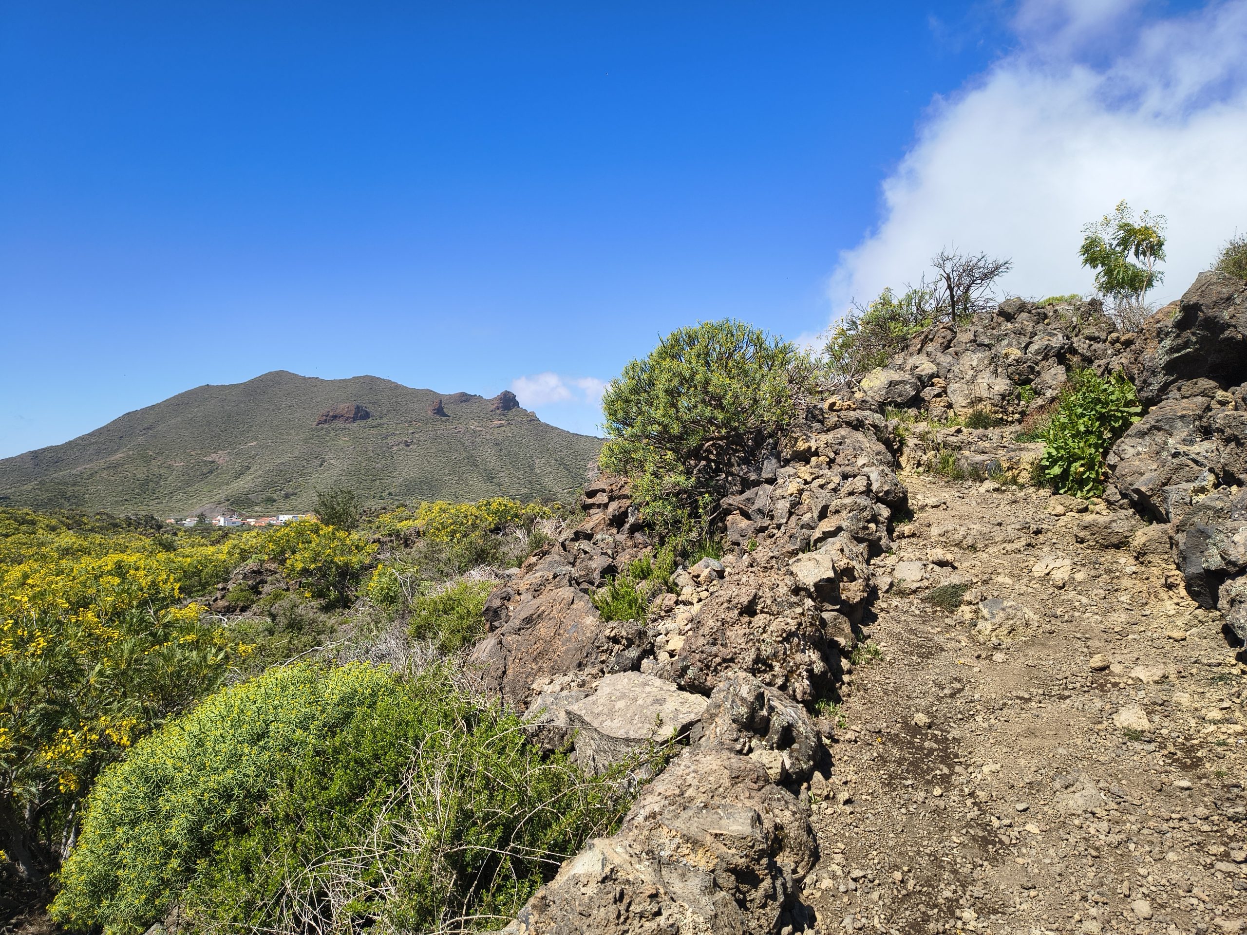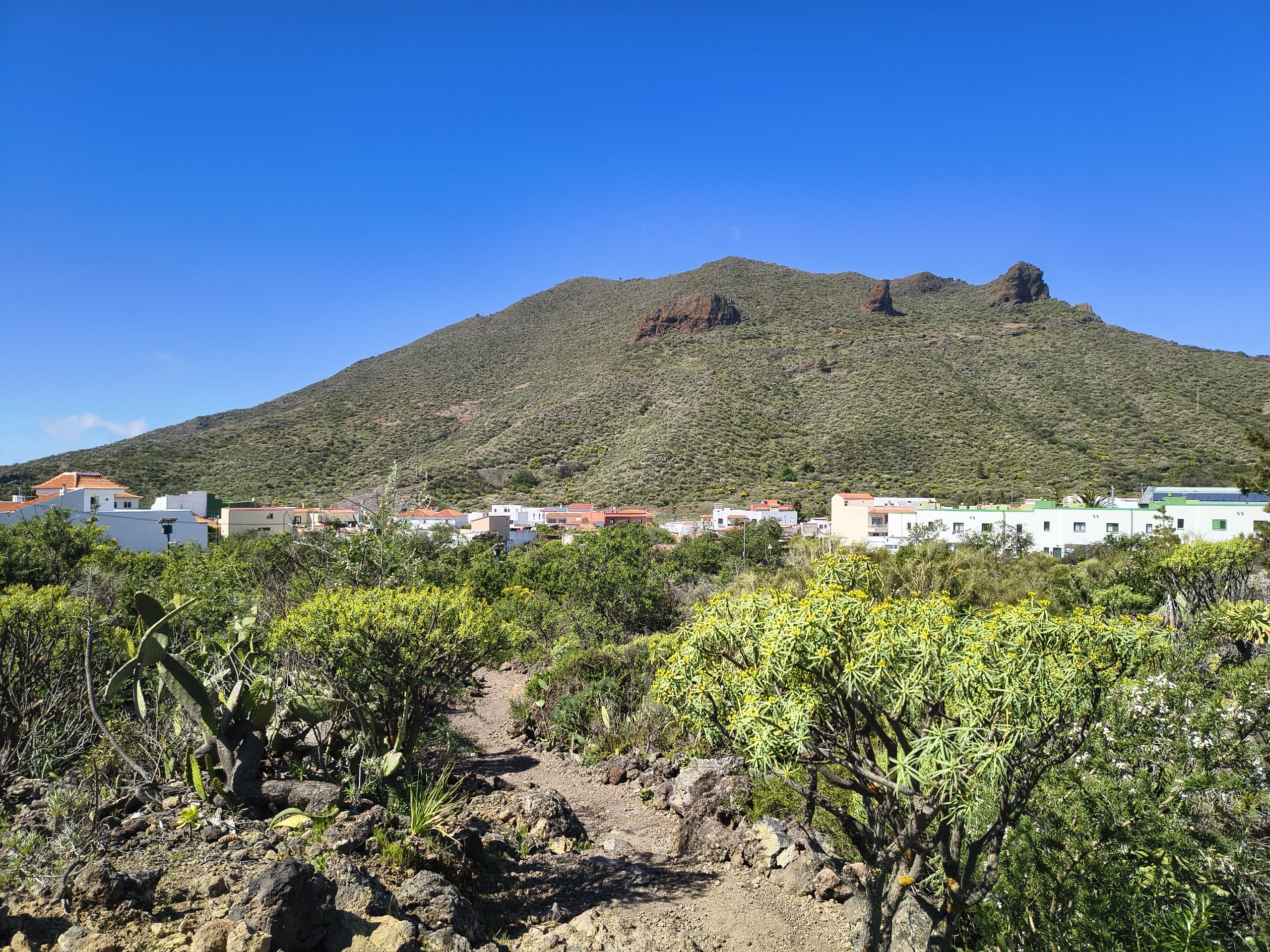 In Santiago del Teide startete unsere Wanderung durch das Sukkulenten- und Kaktusgebiet. Die Wanderung war ca. 5 km lang und war mit 60 Höhenmetern eher leicht. Die Wege führten über Vulkangestein und boten immer wieder schöne Ausblicke auf den Ort und sogar den verschneiten Teide.