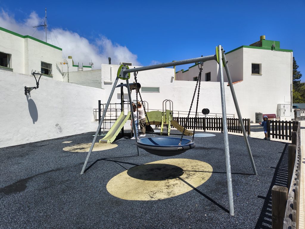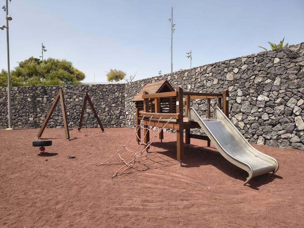Einen kleine Spielplatz haben wir in Santiago del Teide besucht. Es gibt eine Nestschaukel, ein Klettergerüst mit Rutschen und mehrere Wackeltiere. Zudem stehen Fitnessgeräte zur Verfügung.
