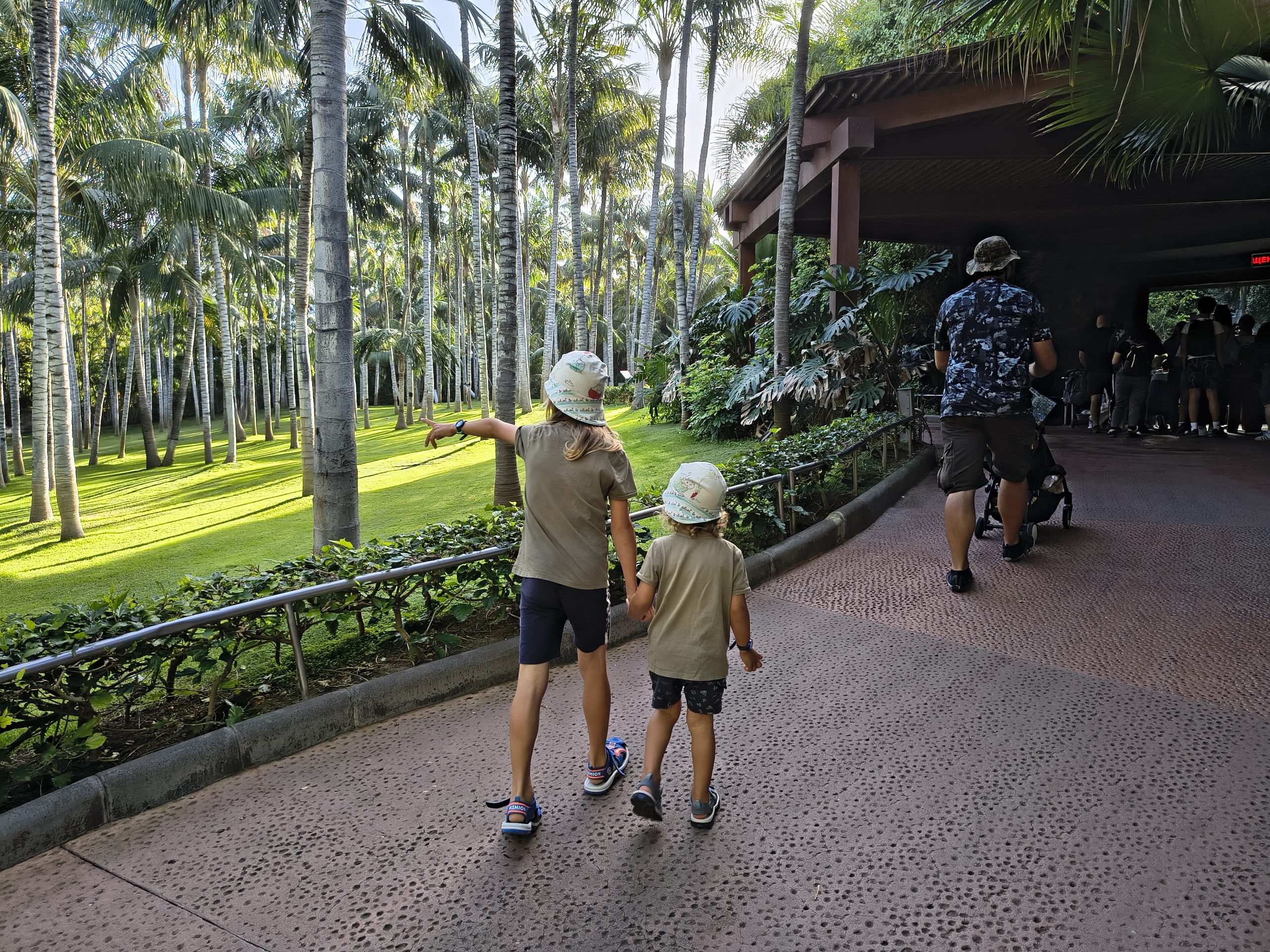 Es gibt herrliche Spazierwege zwischen Palmen in einer grünen Oase.