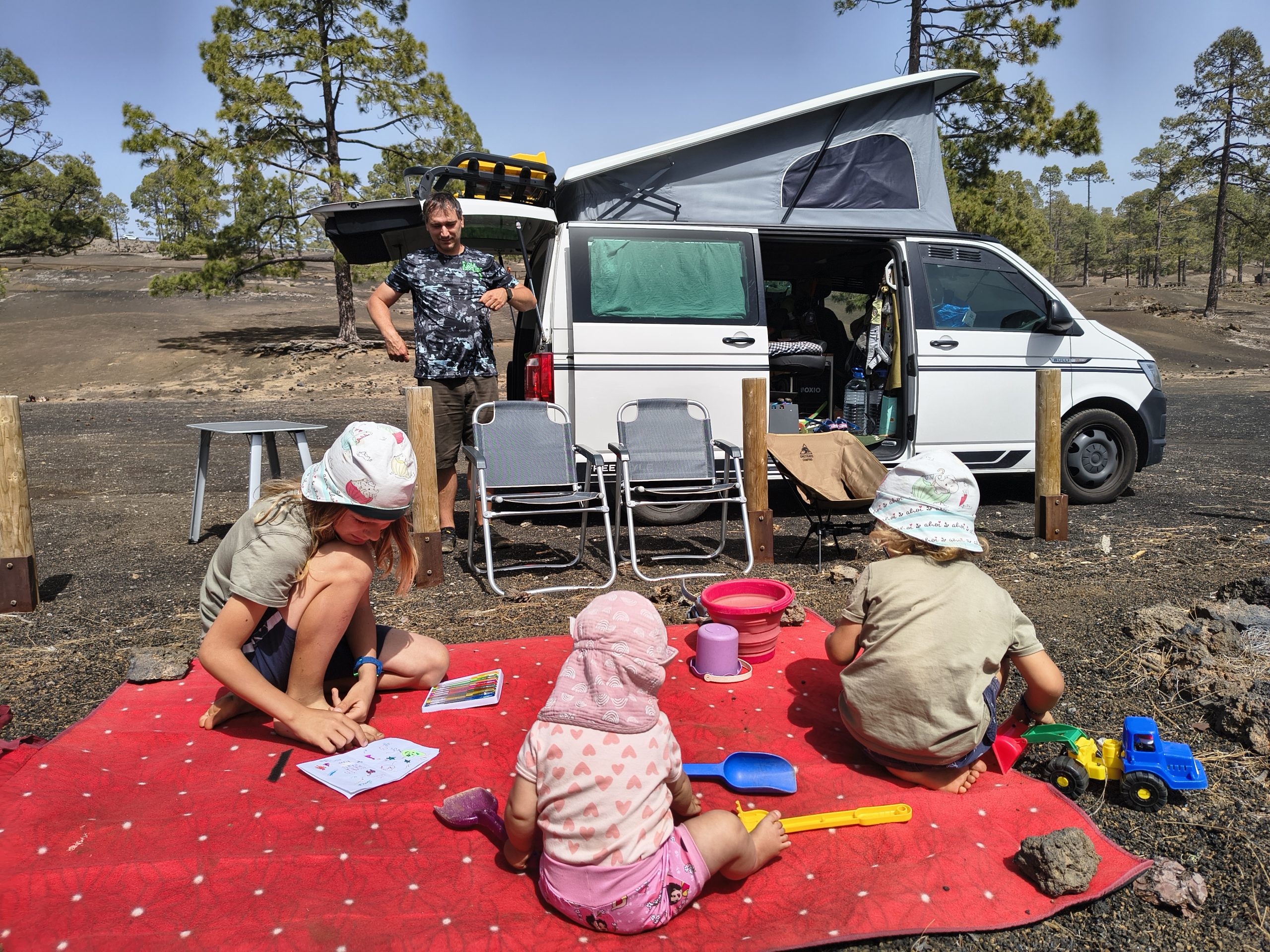 Wir haben zwei Nächte auf einem Naturcampingplatz „El Chío“ in den Bergen von Teneriffa verbracht. Wir hatten eine grandiose Zeit in der Natur und in den Bergen. Vom Campingplatz hatten wir einen super Ausblick auf den verschneiten Teide. Am Campingplatz gab es sogar lauwarme Duschen. Wir übernachteten auf dem Stellplatz für Camper. Es gibt auch einen Zeltplatz. Zudem stehen viele Picknicktische und Grillmöglichkeiten zur Verfügung. Einen Spielplatz mit Rutschen und Schaukeln gibt es ebenfalls.