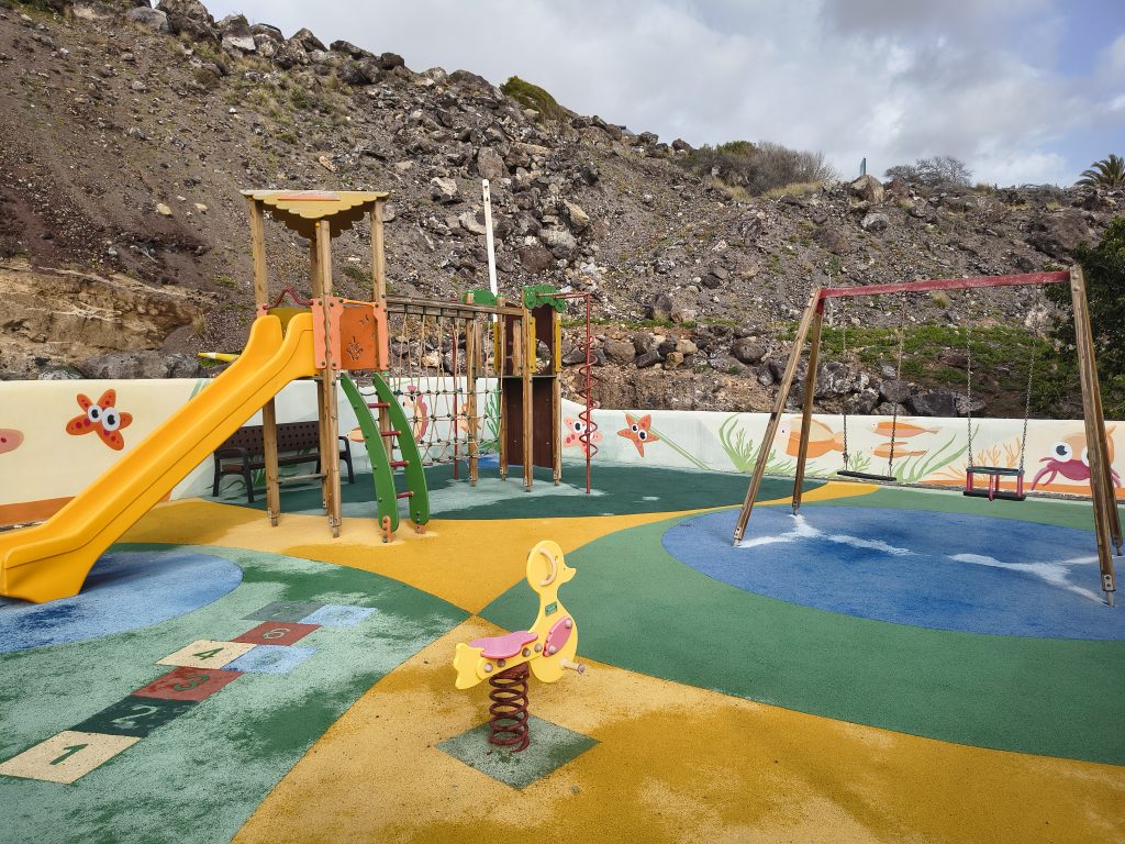 In Añaza gibt es am Strand einen Spielplatz mit Wippe, Karussell, Schaukeln und Klettergerüst.